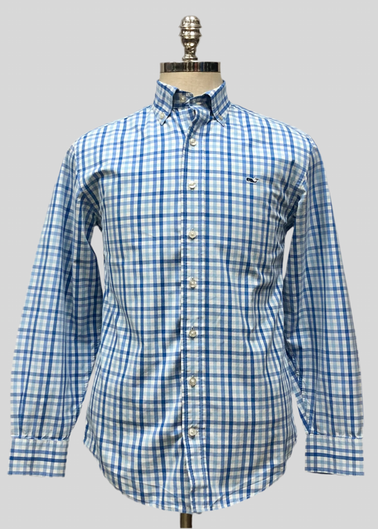 Camisa de botones Vineyard Vines 🐳 color blanco de cuadros en color azul y celeste Talla S Entalle Clásico