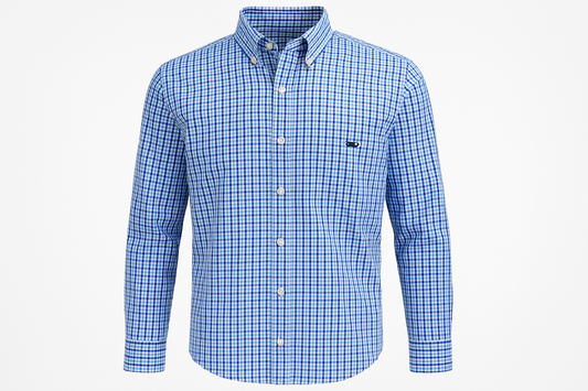 Camisa de botones Vineyard Vines 🐳 color Azul con patrón de cuadros en color celeste, rojo y blanco Talla S Entalle Clásico