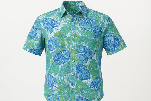 Camisa de botones Tommy Bahama 🌴 color blanco con diseño de hojas en azul y verde Talla S Entalle Regular