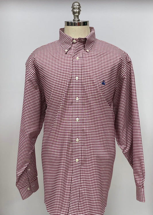 Camisa Brooks Brothers 🐑 con patrón de cuadros gingham en rojo oscuro y blanco Talla XXL Entalle Regular
