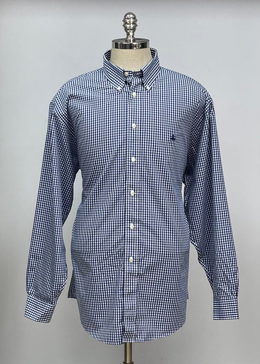 Camisa Brooks Brothers 🐑 con patrón de cuadros gingham en azul oscuro y blanco Talla XXL Entalle Regular