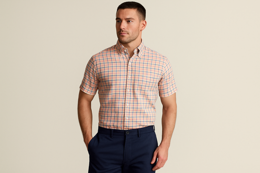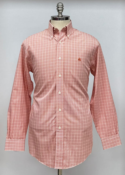Camisa Brooks Brothers 🐑 de cuadros en color naranja y blanco Talla Small Entalle Regular