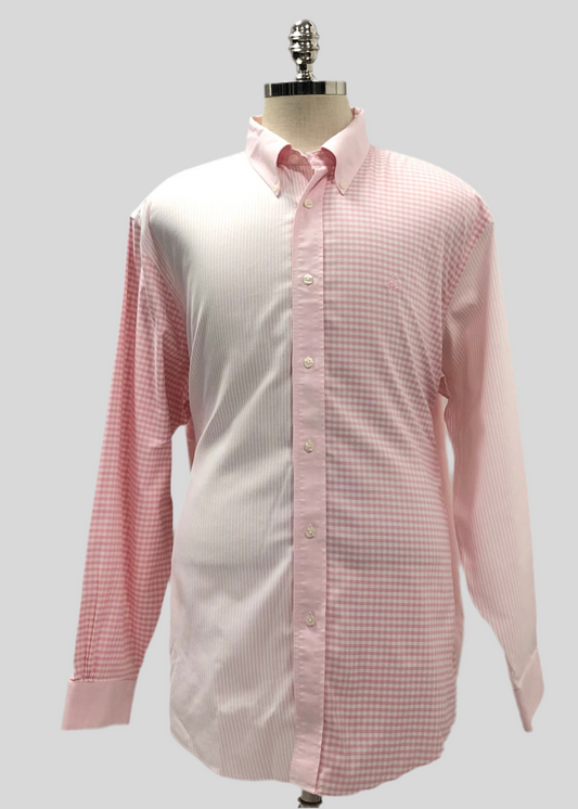 Camisa Brooks Brothers 🐑 con patron de rayas y cuadros gibgham en rosado y blanco Talla XXL Entalle Regular
