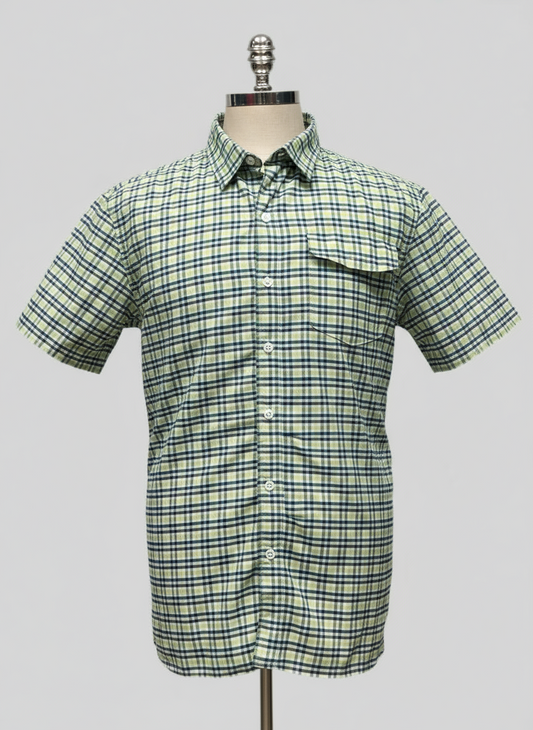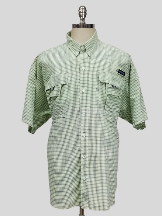 Camisa Columbia 🔹 Color blanco de cuadros en verde claro y oscuro Manga corta Talla L (ver descripción)