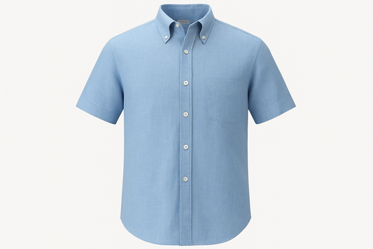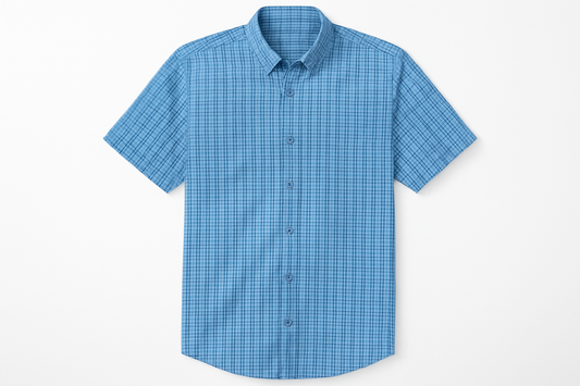 Camisa Columbia 🔹 Color celeste con patrón de cuadros en negro y blanco Manga corta Talla XL