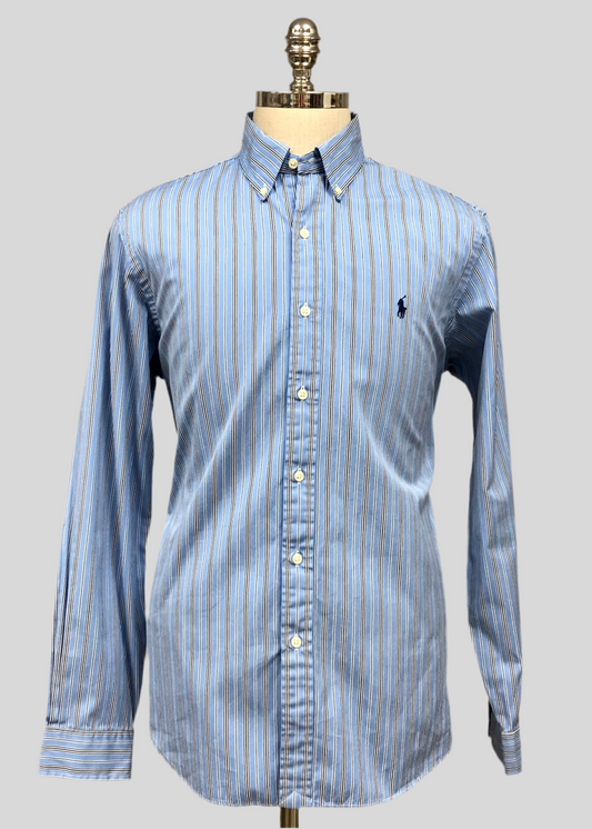 Camisa celeste con patron de rayas en color negro y blanco Polo Ralph Lauren 🏇🏼 Talla L Entalle Regular