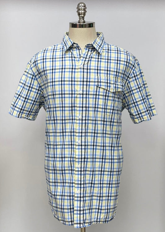 Camisa Columbia 🔹 Color blanco con patrón de cuadros en amarillo, azul y negro Manga corta Talla XL