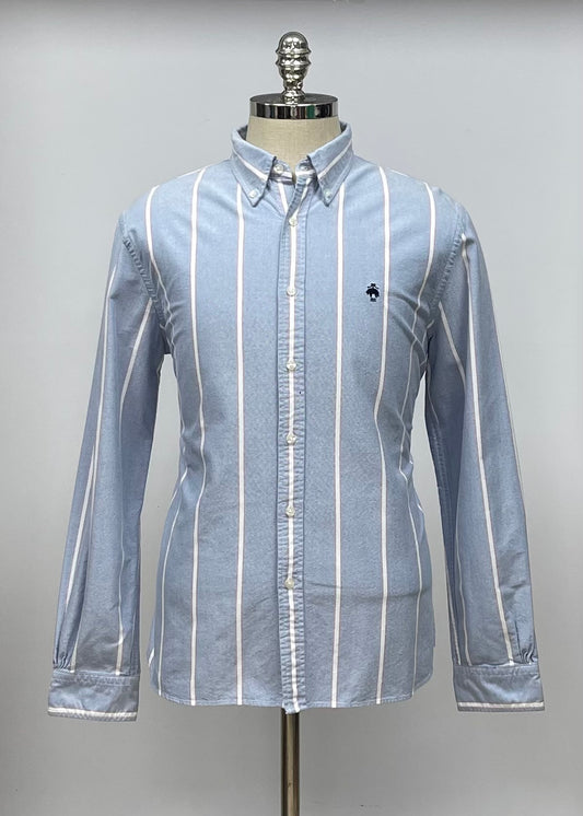 Camisa Brooks Brothers 🐑 Oxford color celeste con patrón de rayas en blanco Talla L Entalle Regular