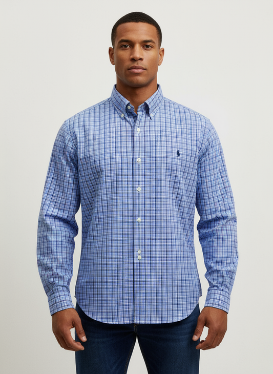 Camisa celeste de cuadros en color azul y rosado Polo Ralph Lauren 🏇🏼Talla L Entalle Custom Fit