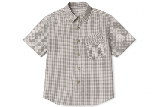 Camisa Columbia 🔹 Colección Titanium Color crema con patrón de cuadros en kaki Manga corta Talla L