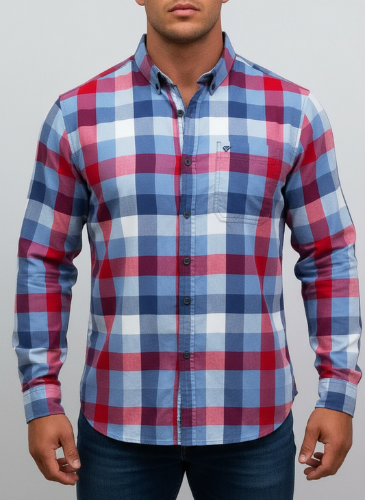 Camisa Columbia 🔹 Con patrón de cuadros en color rojo, azul y blanco Talla XXL