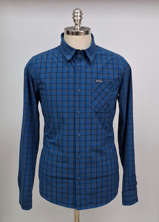 Camisa Columbia 🔹 Con patrón de cuadros en color azul, gris y negro Talla M