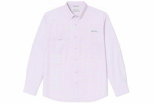 Camisa Columbia 🔹 Super Tamiami Color blanco con patrón de cuadros en lila Talla XXL