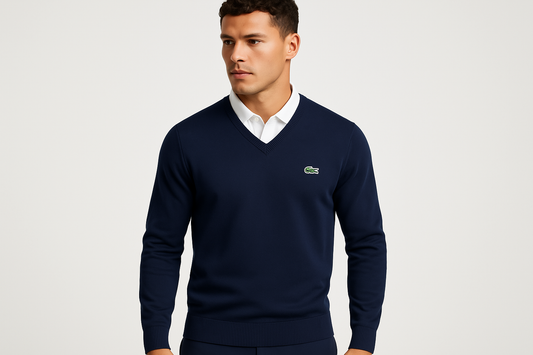 Sueter Jersey con cuello V Lacoste 🐊 color azul navy Talla M