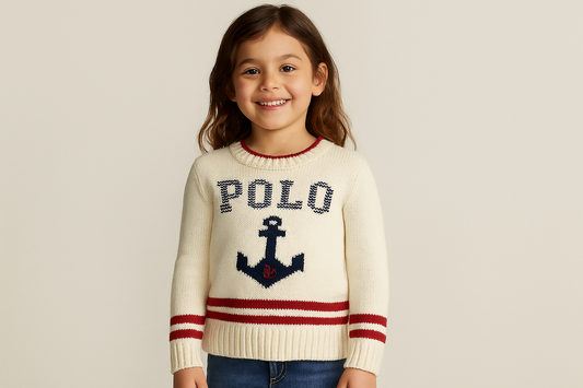 Sueter Jersey tejido de niña Polo Ralph Lauren 🏇🏼 color blanco con diseño de ancla Talla S