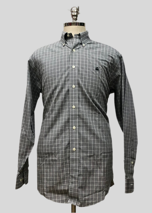 Camisa Brooks Brothers 🐑 color blanco con cuadros en negro Talla L Entalle Regular
