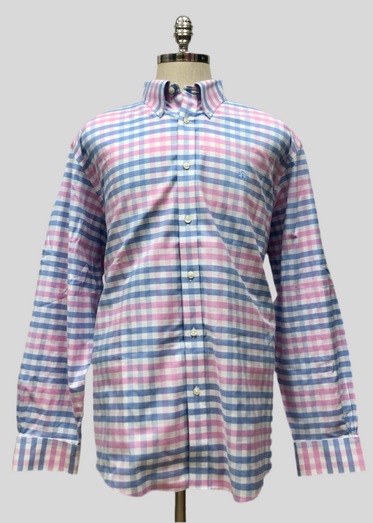 Camisa Brooks Brothers 🐑 color blanco con cuadros tartán en rosado y celeste Talla M Entalle Regular