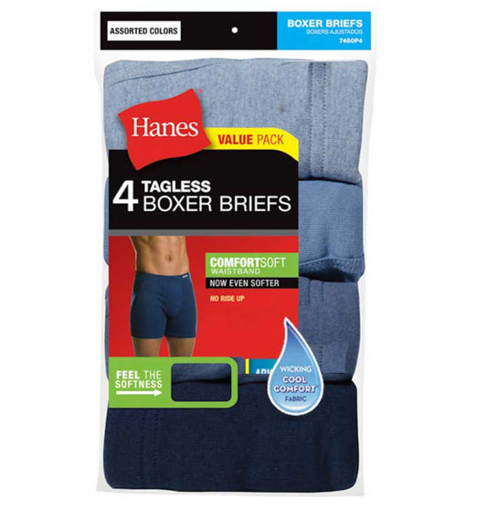 Paquete de 4 Calzoncillos tipo Boxer Hanes Comfortsoft en color azules y gris - Tela ligera en Talla S