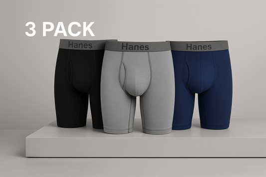 Calzoncillos tipo Boxer Hanes de Tela de algodón Comfort Flex en color azul, gris y negro en Talla XXL