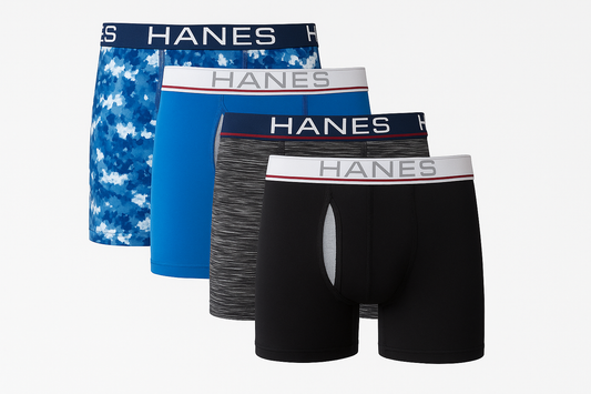 Paquete de 4 Calzoncillos tipo Boxer Hanes X-Temp Performance color azul, gris y negro - en Talla 2XL
