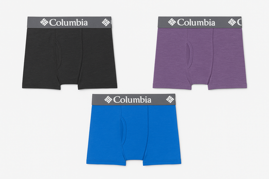 Combo de 3 Boxers Briefs Columbia 🔷 Tela de algodón stretch color morado, azul y gris Talla XL