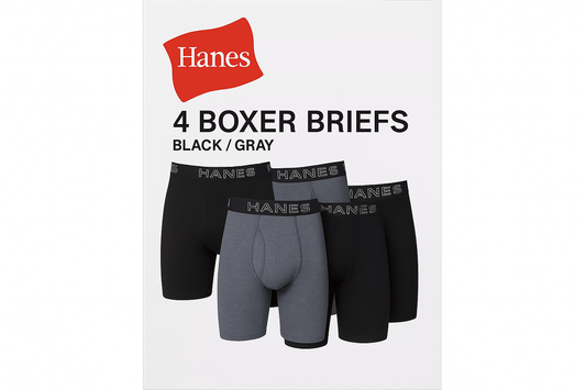 Paquete de 4 Calzoncillos tipo Boxer largos Hanes de algodón en color gris y negro - en Talla L