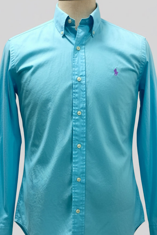 Camisa de botones Polo Ralph Lauren 🏇🏼 Algodon ligero en color celeste Talla S Entalle Regular