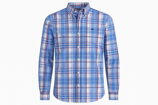 Camisa de niño Vineyard Vines 🐳 con patrón de cuadros en color azul, blanco y rojo Talla M (12-14) Entalle Regular