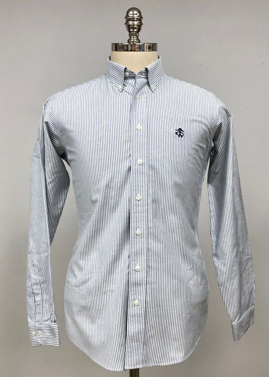 Camisa de niño Brooks Brothers 🐑 Oxford en color blanco con patrón de rayas en gris Talla XL (18-20) Entalle Regular