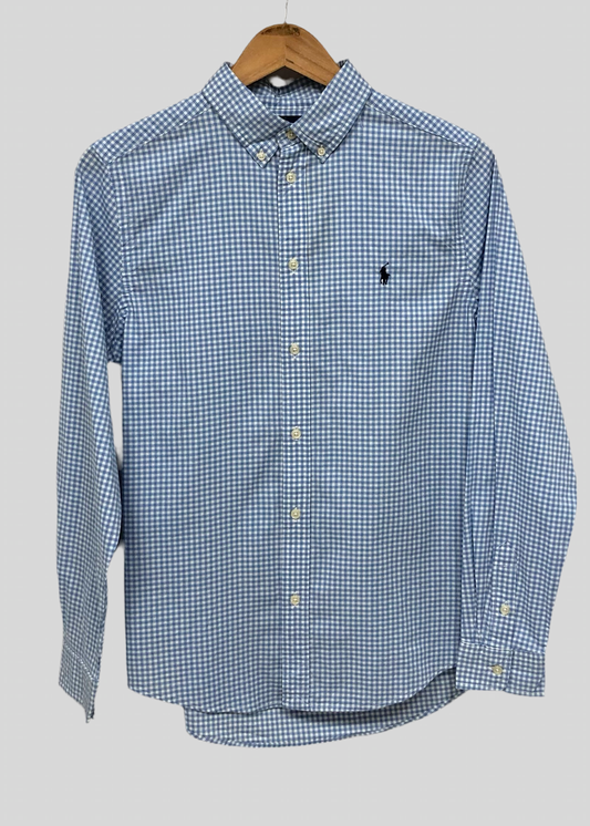 Camisa Polo Ralph Lauren 🏇🏼 color patron de cuadros gingham en celeste y blanco Talla XL (18) de niño Entalle Regular
