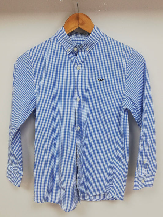 Camisa de niño Vineyard Vines 🐳 de cuadros gingham en color celeste y blanco Talla S de niño Entalle Regular