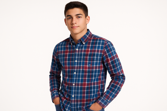 Camisa de niño Tommy Hilfiger 🇺🇸 con patron de cuadros en azul, rojo y blanco Talla L (16-18) Entalle Regular