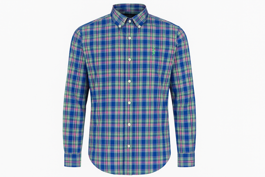 Camisa Polo Ralph Lauren 🏇🏼 con patron de cuadros en azul, verde y rosado Talla M (10-12) de niño Entalle Regular