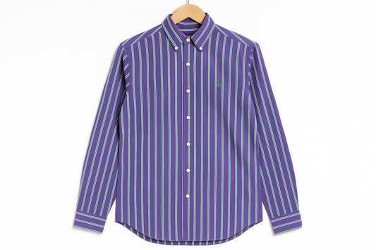Camisa Polo Ralph Lauren 🏇🏼 color morado patron de rayas en verde y blanco Talla XL (18) de niño Entalle Regular