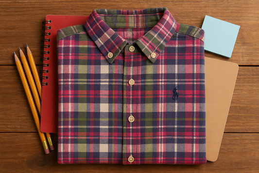 Camisa Polo Ralph Lauren 🏇🏼 con patron de cuadros en eojo, azul y verde Talla M (10-12) de niño Entalle Regular