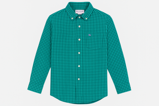 Camisa de niño Southern Tide 🐟 Performance con patron de cuadros en tonalidad verde Talla L (12-14) Entalle Regular