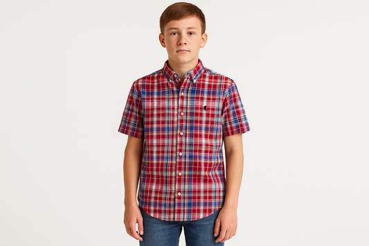 Camisa de niño Polo Ralph Lauren 🏇🏼 con patron de cuadros en rojo, azul, blanco y verde Talla L (14-16) Entalle Regular
