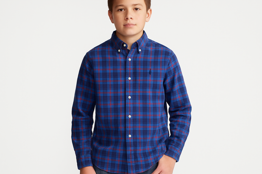 Camisa de niño Polo Ralph Lauren 🏇🏼 color azul con patron de cuadros en rojo y azul navy Talla L (14-16) Entalle Regular