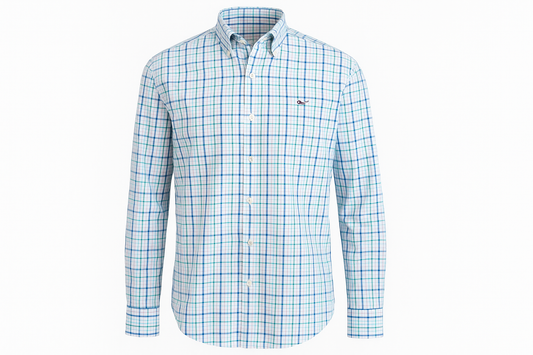 Camisa de niño Vineyard Vines 🐳 color blanco de cuadros en color turquesa, azul y rosado Talla XL Entalle Regular
