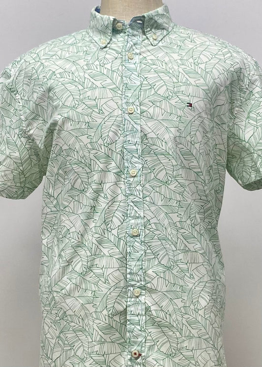 Camisa de botones Tommy Hilfiger 🇺🇸 color blanco con diseño de floral en color verde Talla XL Entalle Custom Fit