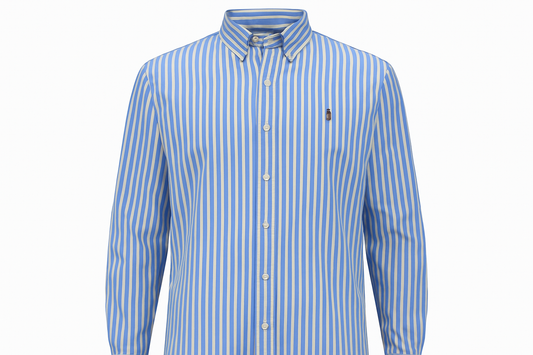 Camisa Polo Ralph Lauren 🏇🏼 color celeste con patron de rayas en color amarillo y verde Talla XL Entalle Regular