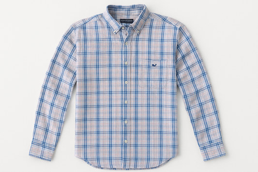 Camisa de botones Vineyard Vines 🐳 color rosado de cuadros en color azul y celeste Talla S Entalle Clásico