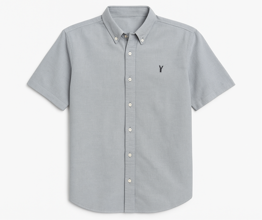 Camisa Columbia 🔹 Color celeste con patrón de cuadros en negro y blanco Manga corta Talla XL