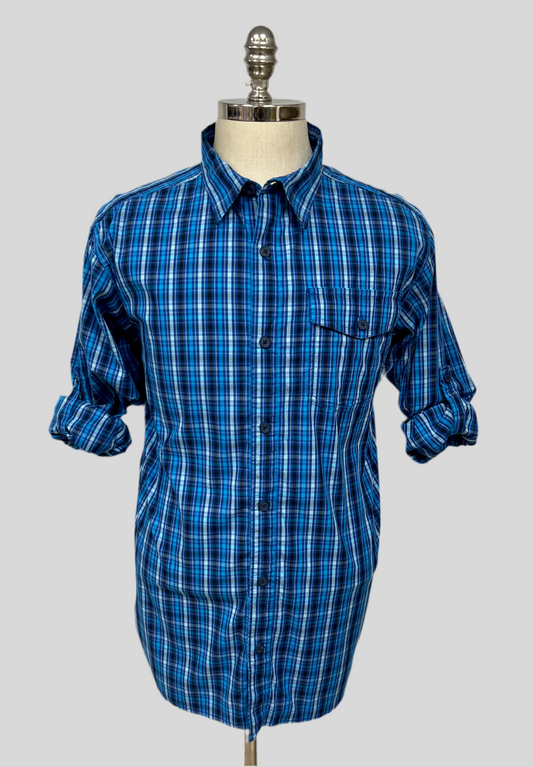Camisa de botones Columbia 🔹 con patrón de cuadros en color azul, celeste y blanco con Omni-Wick Talla L