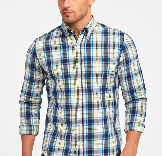 Camisa Nautica ⚓️ color blanco con cuadros en color amarillo y azul Talla S Entalle Regular