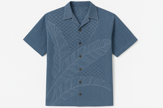 Camisa de botones Tommy Bahama 🌴color azul con diseño de hojas Talla M Entalle Regular