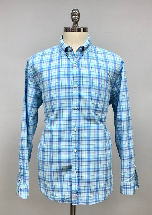 Camisa de botones Vineyard Vines 🐳 con patrón de cuadros en color celeste, azul y turquesa Talla XL Entalle Slim Fit