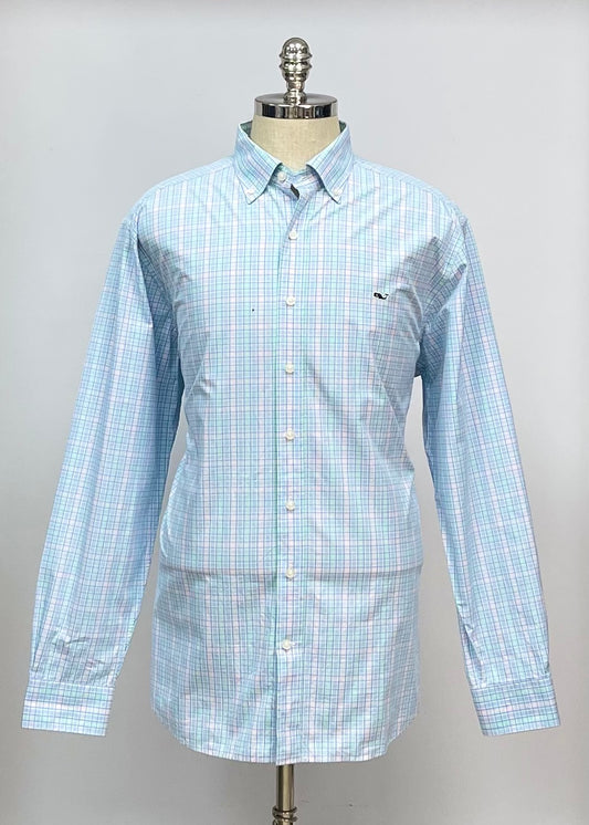 Camisa de botones Vineyard Vines 🐳 color blanco de cuadros en color rosado, verde y celeste Talla XL Entalle Slim Fit