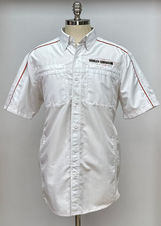 Camisa de botones Harley-Davidson 🏍 Color blanco con Logo en color naranja y negro Talla M Entalle Regular