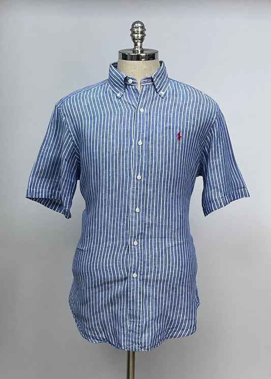 Camisa Polo Ralph Lauren 🏇🏼 de Lino con patron de rayas en color azul y blanco Talla M Entalle Clásico